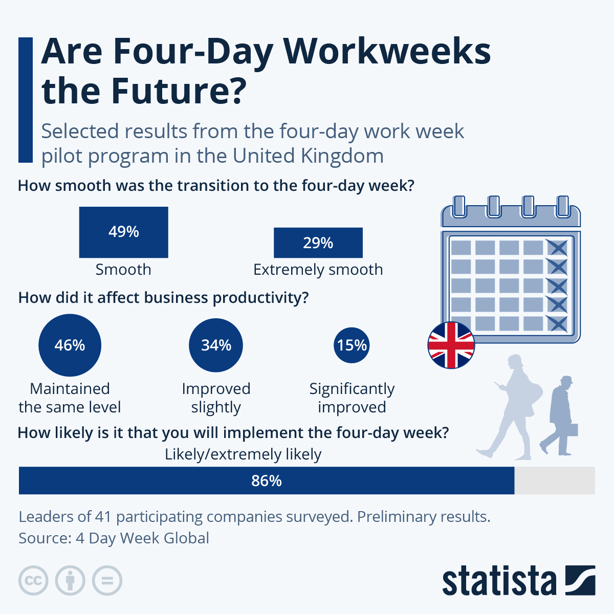 Resultados de un programa piloto de semana laboral de cuatro días en el Reino Unido de Statista.