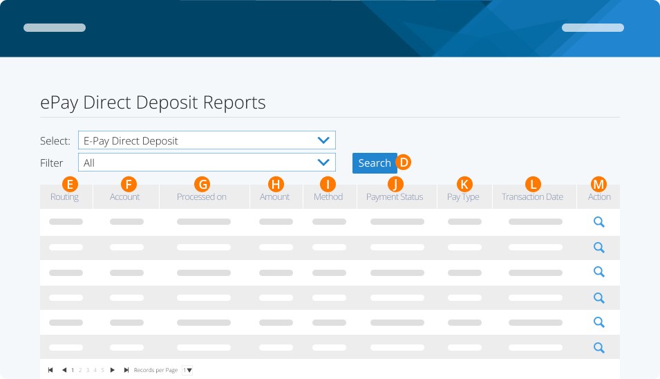 Mots-clés :Paiement électronique, Dépôt direct, Virement bancaire, Paiement de factures, Transfert électronique, Méthode de financement, Historique des remises, Historique des transactions, Données de paiement