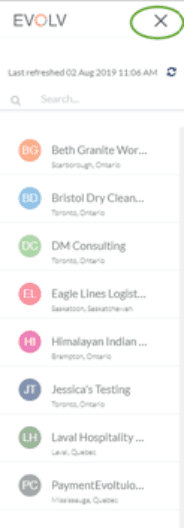 The left-hand menu provides quick client access. These are the small icons that represent your active clients. You can search or simply select any client from the list to open their EVOLV profile.