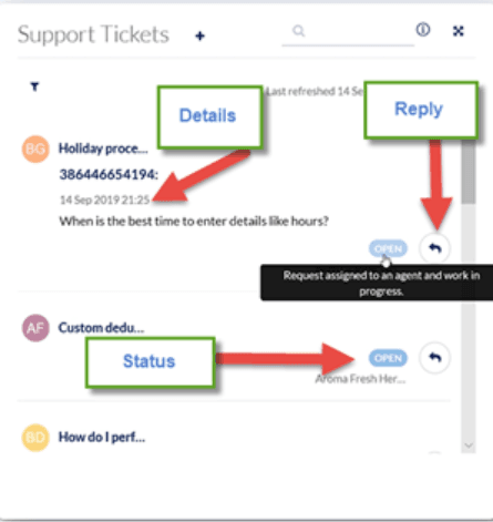You can see the list of tickets you’ve submitted in the Support Tickets tile. You can click to see the details of a ticket, including the status and to reply to any messages from us.