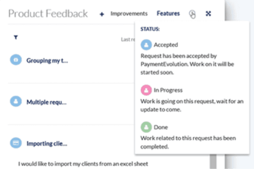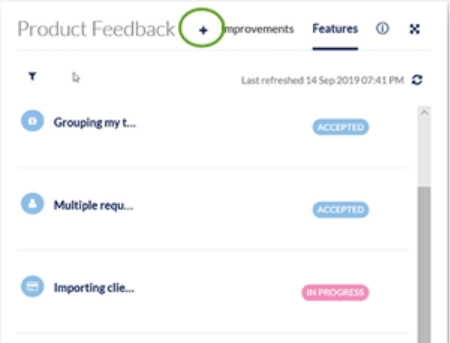 After your request has been accepted, you’ll be able to see your own and others’ requests in the Product Feedback tile. We update the status of all suggestions as they progress through the development process. To monitor the status of your suggestions: