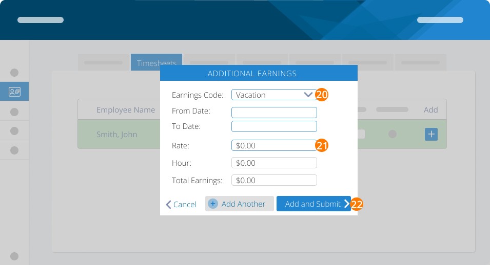 Step 19.On the employee’s record, click + to add additional earnings for the employee.