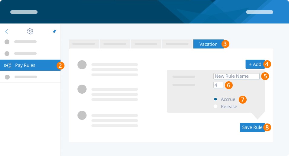 By default, PayEvo provides 4%/6%/8% as the default vacation rules with accrue and release each pay options available. If you wish to provide a different percentage, follow the steps below to create the rule.