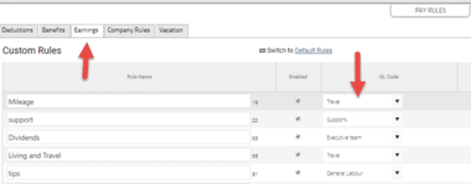 Step 2. The GL code set up in Settings > Pay Rules > Earnings will apply to any earnings paid to an employee that does not have a GL assigned.