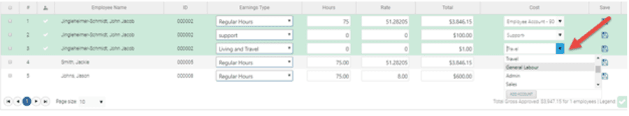 Step 1. All Earnings will default to the employee GL code (if one is assigned).