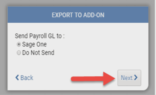 Step 1. Click Actions > End of Period or start a new pay run. The system will prompt you to send your recent transactions to Sage One. Click Next.