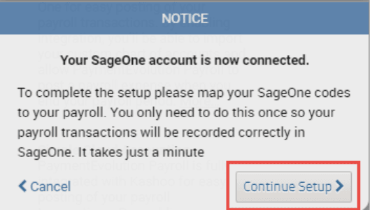 Step 4.You will receive notice that your account is now connected. Click Continue Setup.
