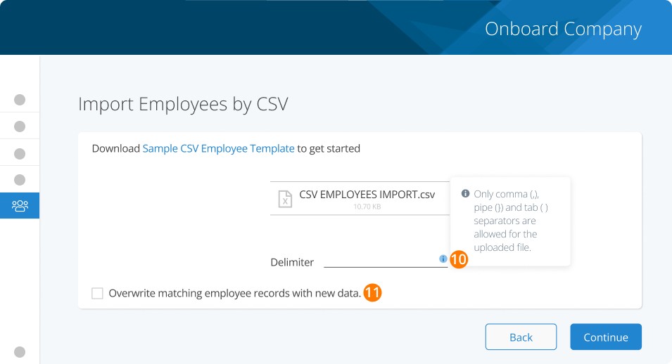 Step 8. Import Employees by uploading a CSV file
