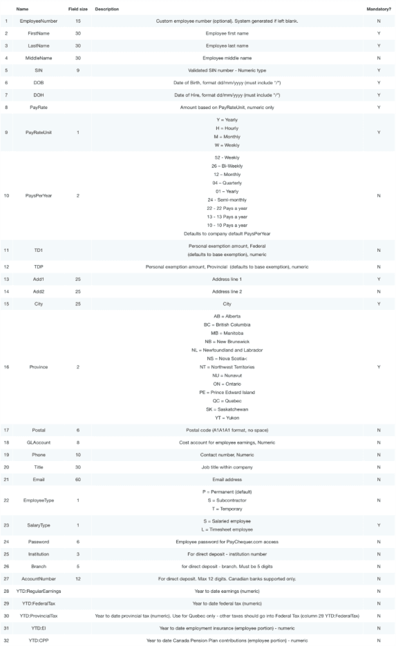 You can import employee data via CSV. Whether you need to add several team members all at once, or you just need to update existing information in your staff profiles, the CSV update method helps cut down on the time to make bulk changes. To get started, make sure the CSV import for employees feature is activated for your account. If you do not see this option, please contact us and we'll help you upgrade to a plan that includes this service.