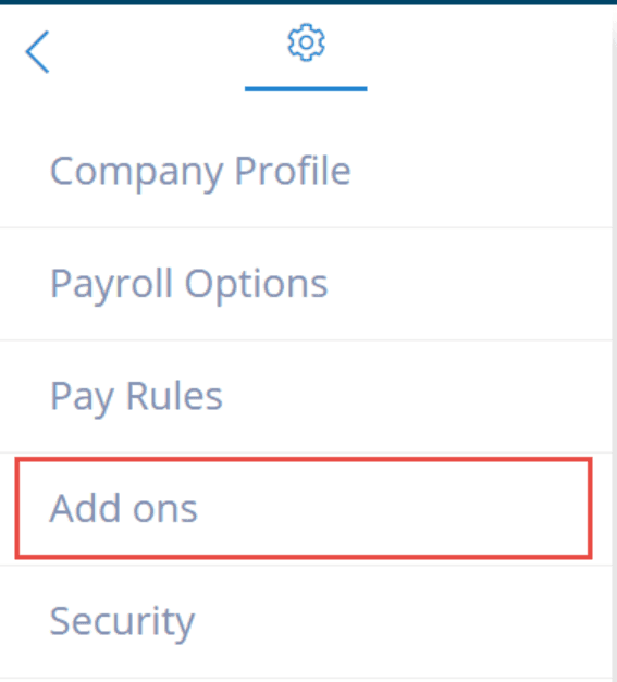 To get started, login to your Payroll account and go to Settings > Add Ons.