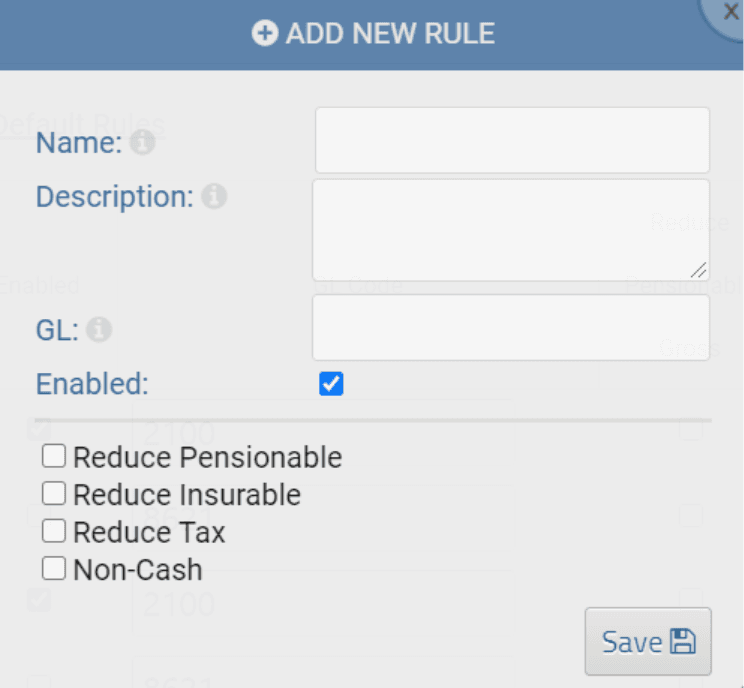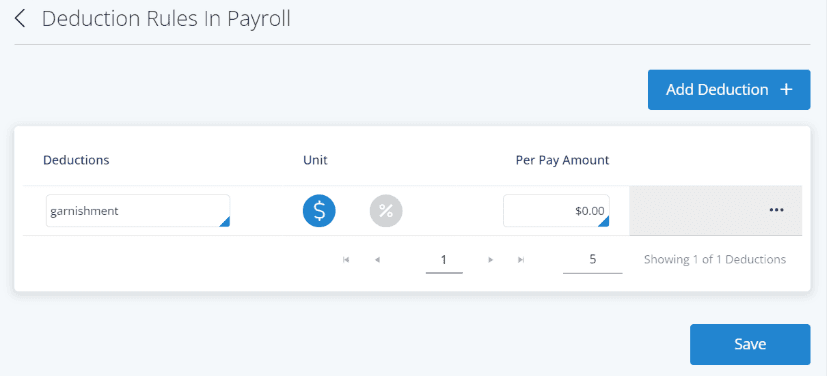 Step 1. Go to Settings > Pay Rules > Deductions > Add New Rule.