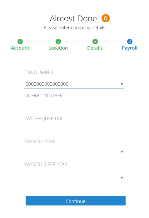 Step 6. Enter Payroll details to continue