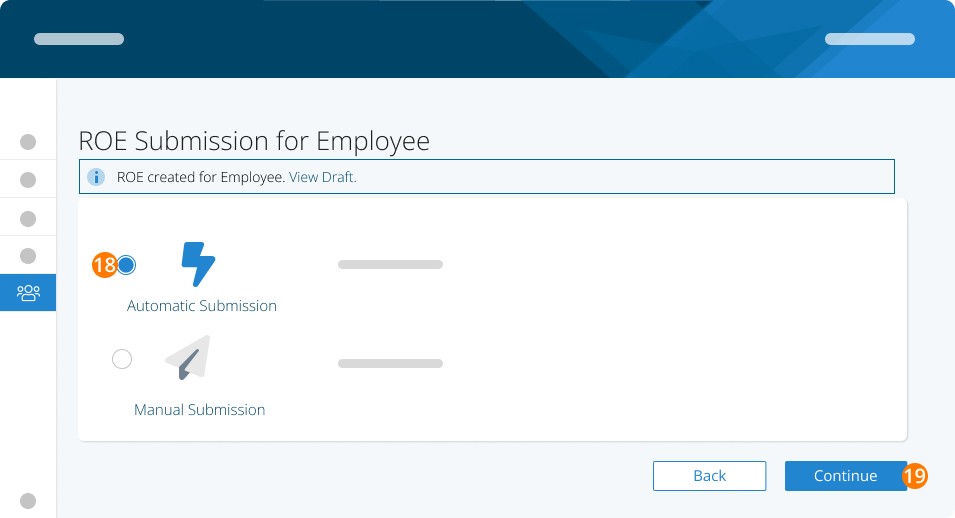If you have navigated away from this screen, go to Employees>Off-Boarding>...>ROE and select Manual Submission again.