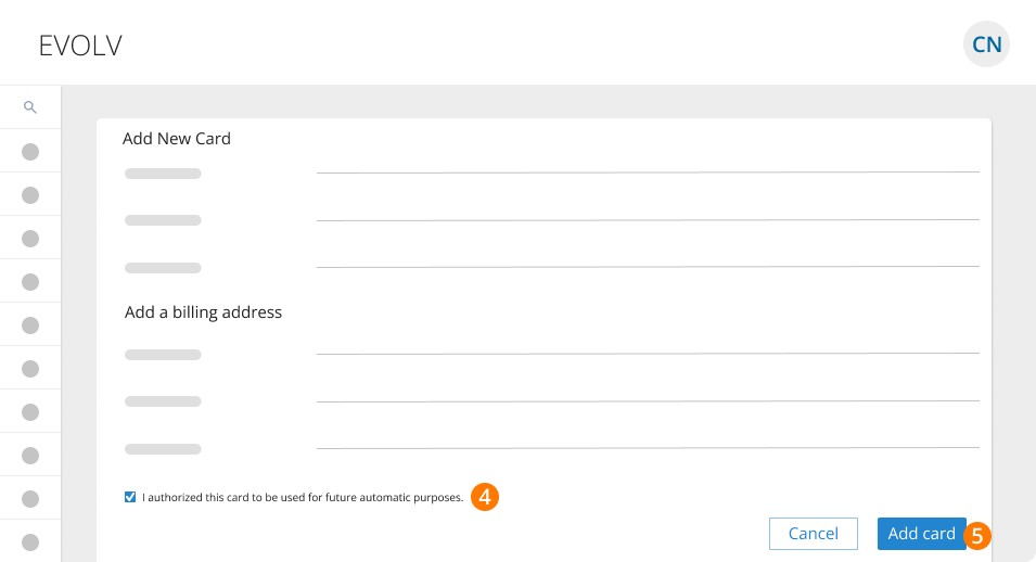 4. Enter your card details and billing information. Then, check the box to authorize automatic payments to be charged to your card for monthly invoices.