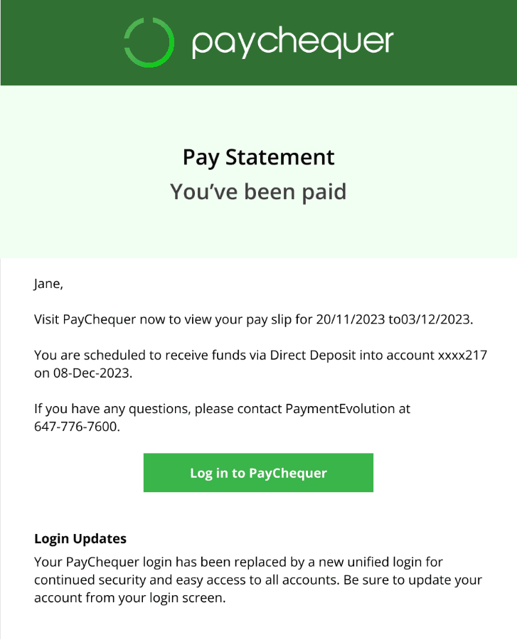Firstly, you’ll receive your PayChequer payslip notification like the one below. Follow the Login to PayChequer link.