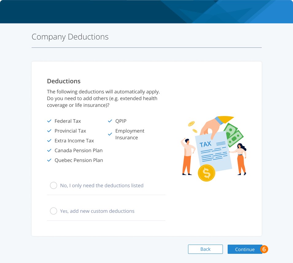Step 6. You can add custom deductions here. We'll automatically apply the mandatory ones, and you can add any custom deductions.