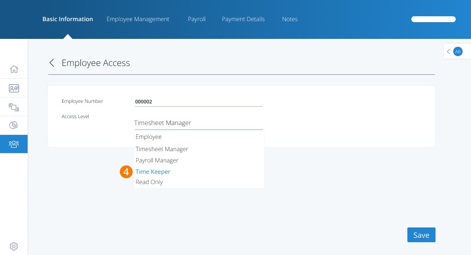 Note: Time Keepers can enter and approve timesheets but cannot run payroll or view sensitive employee data.